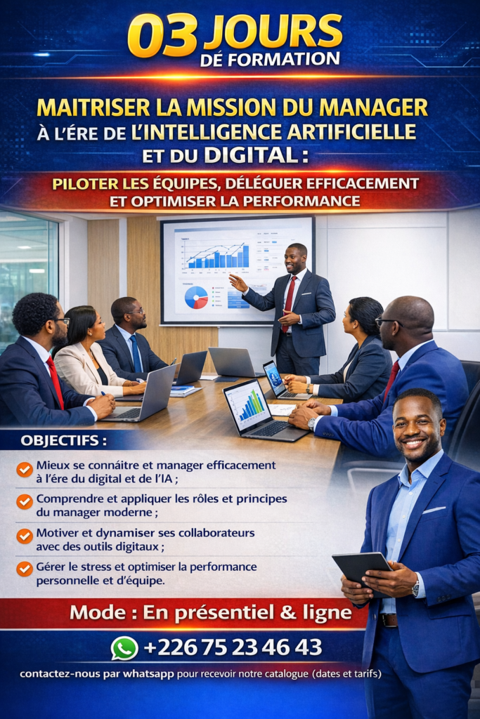 Contenu du programme – Conscience de soi du manager et autodiagnostic assisté par l’IA ; – Outils essentiels du manager efficace, incluant les solutions d’IA managériale ; – Organisation et animation d’équipes de management avec des outils digitaux et IA ; – Manager les personnalités difficiles, de la manipulation et des conflits à l’aide de l’IA ; – Leadership, performance et gestion du stress avec l’appui des technologies intelligentes ; etc.