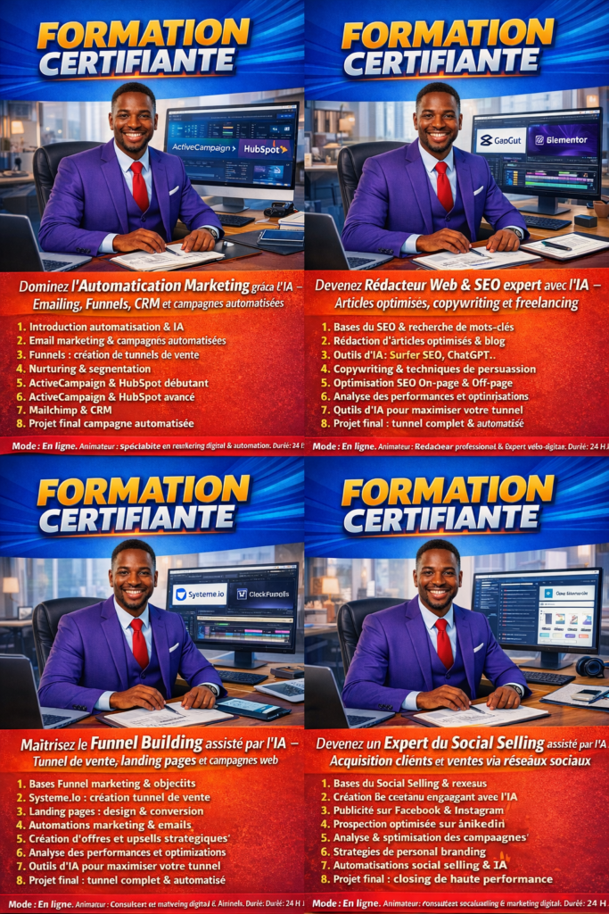 Vous serez capable de créer un tunnel de vente complet, opérationnel et automatisé.